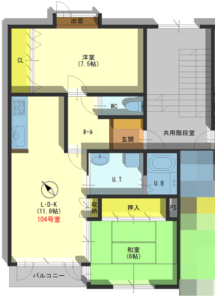 | 間取内容 | LDK 11.8畳 洋室 7.5畳 和室 6畳 | ||
